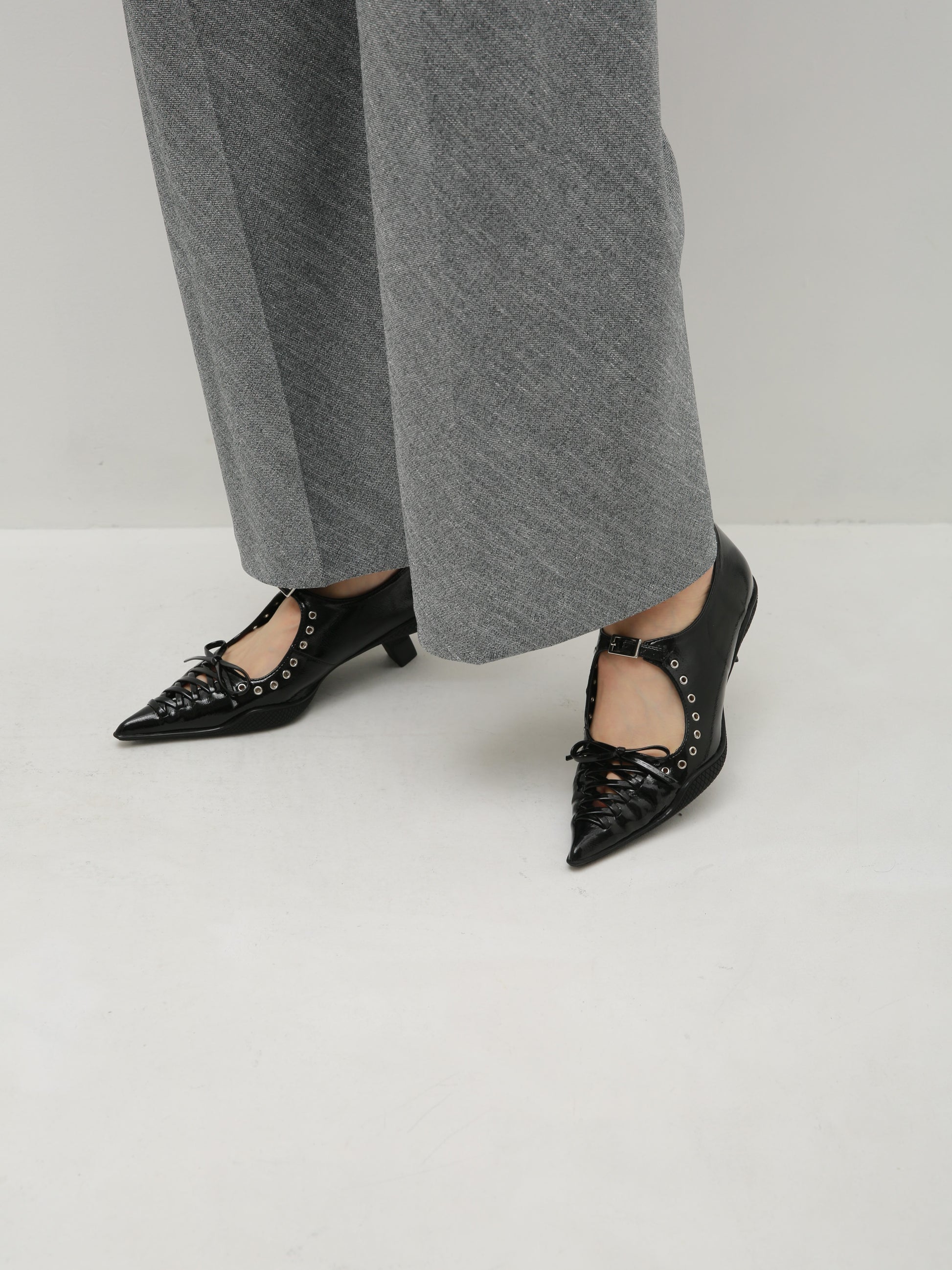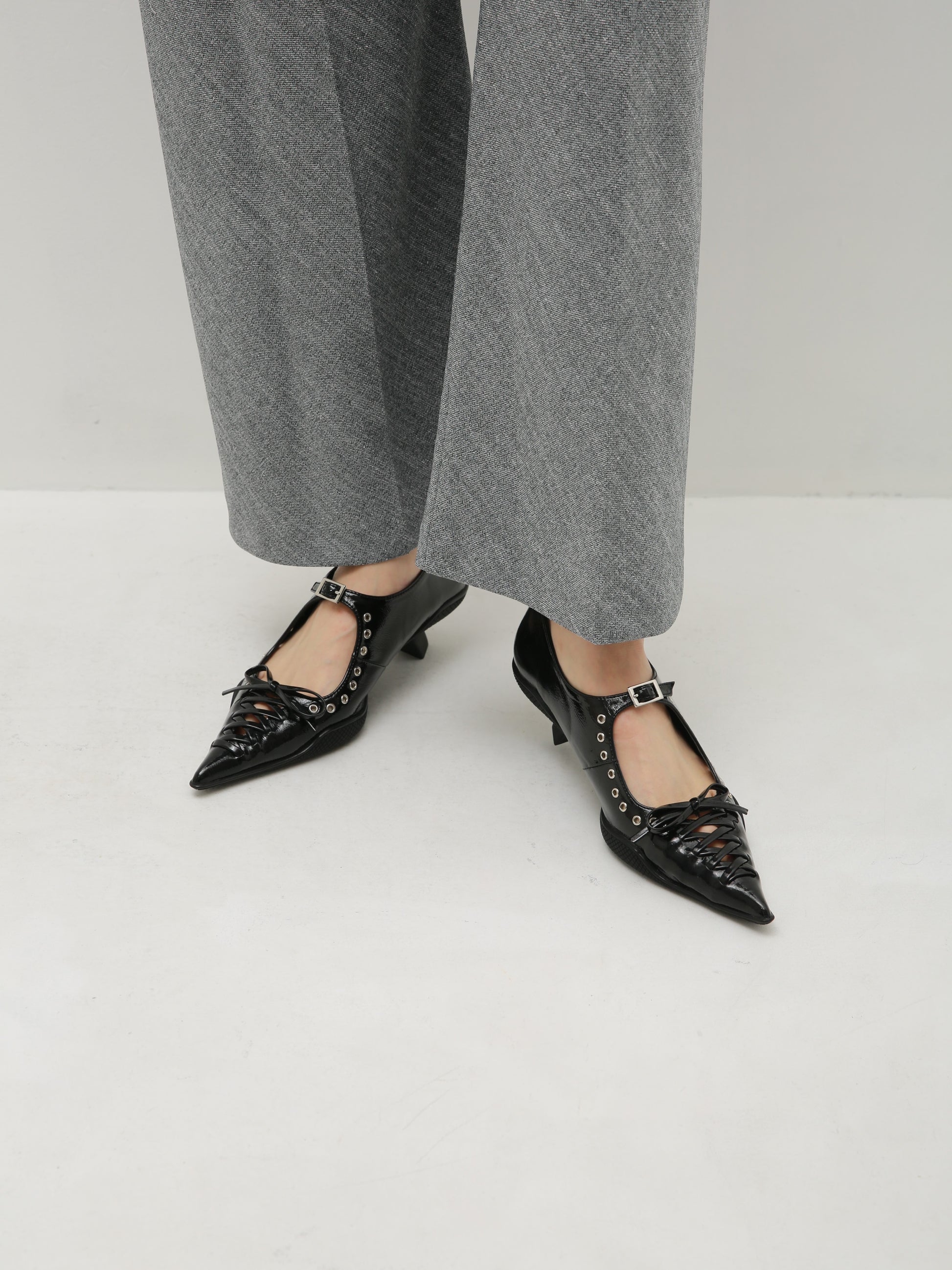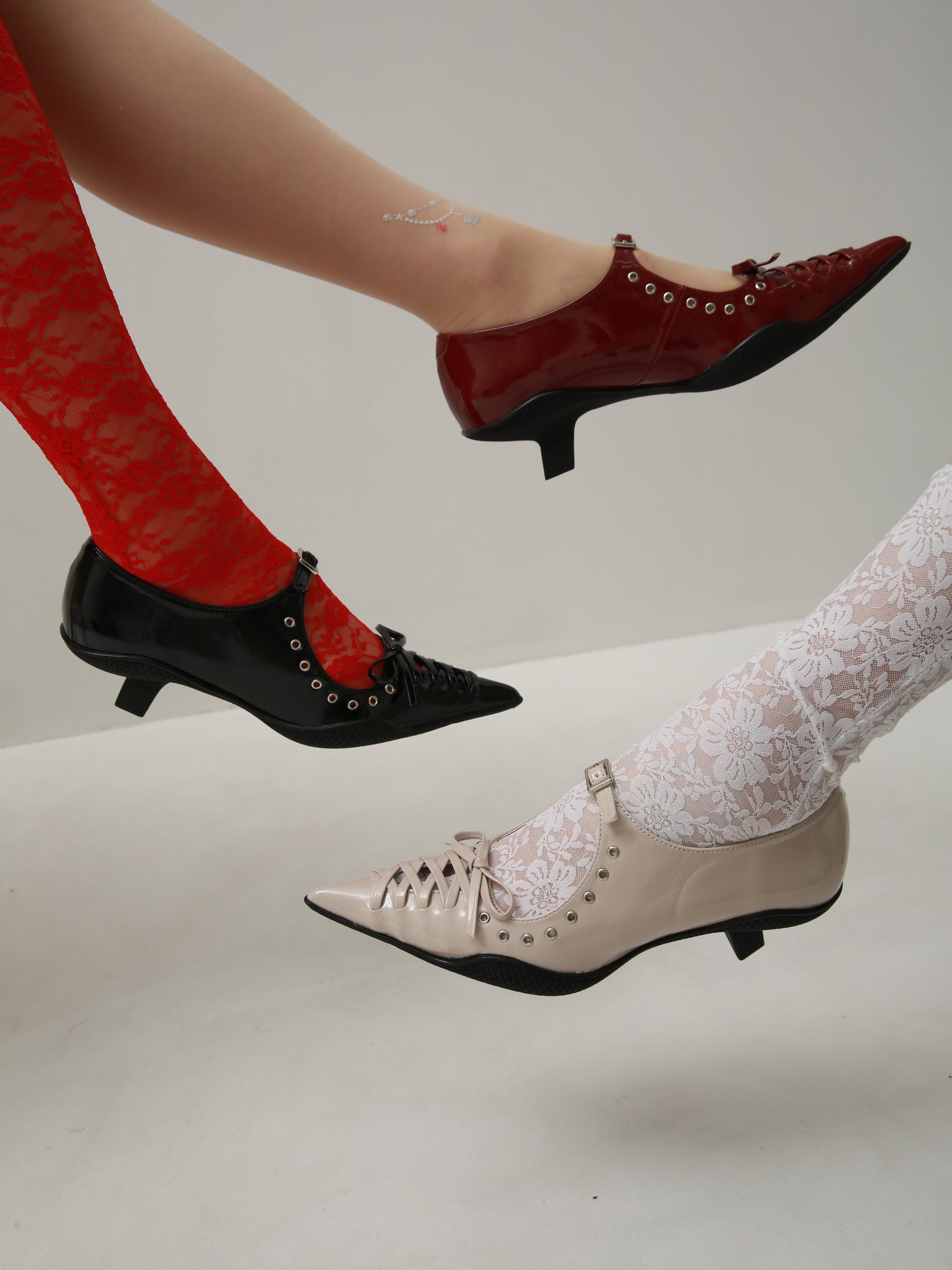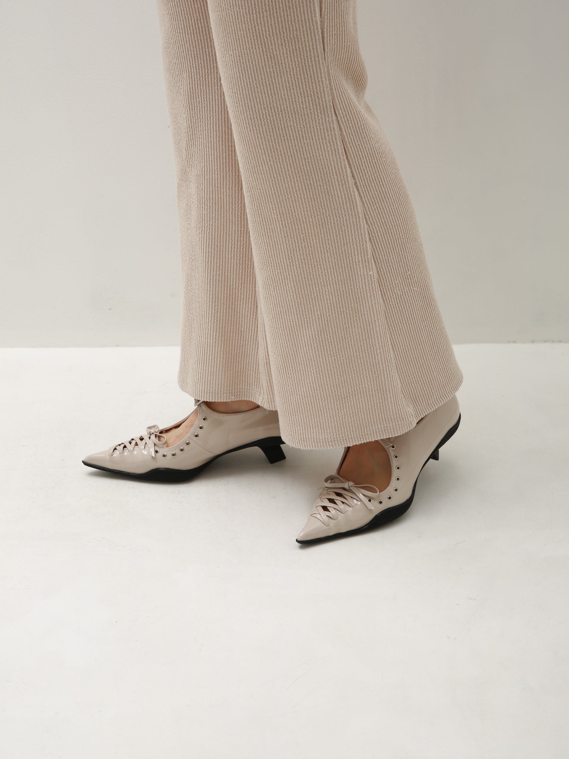 レースアップ、アイレットとぎゅっとトレンドが詰まった一足。