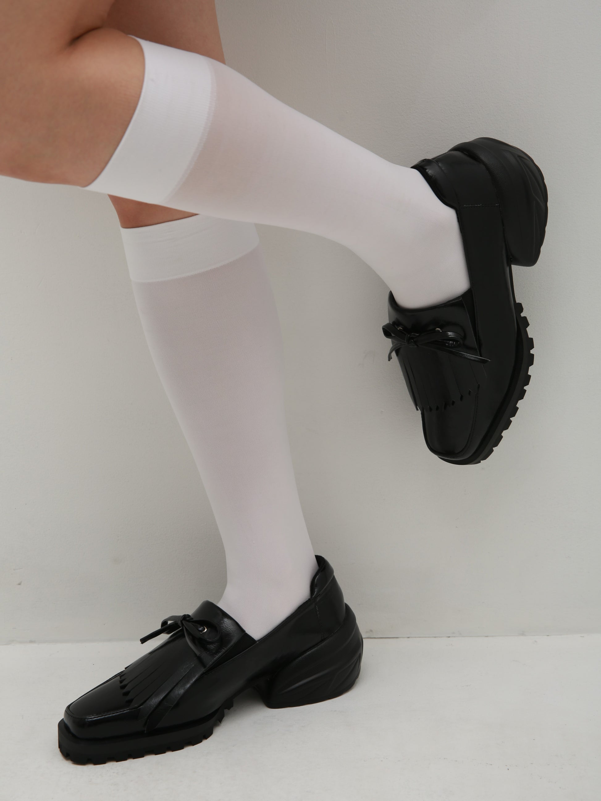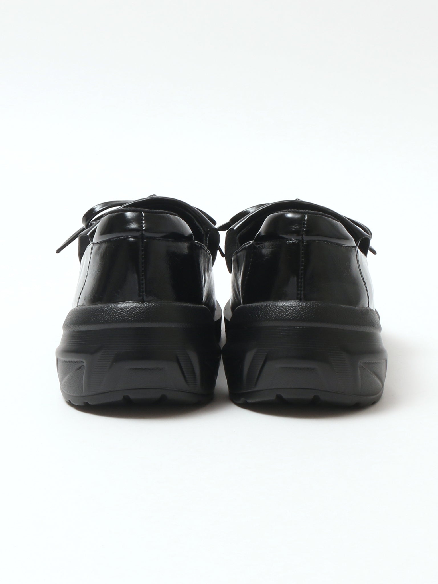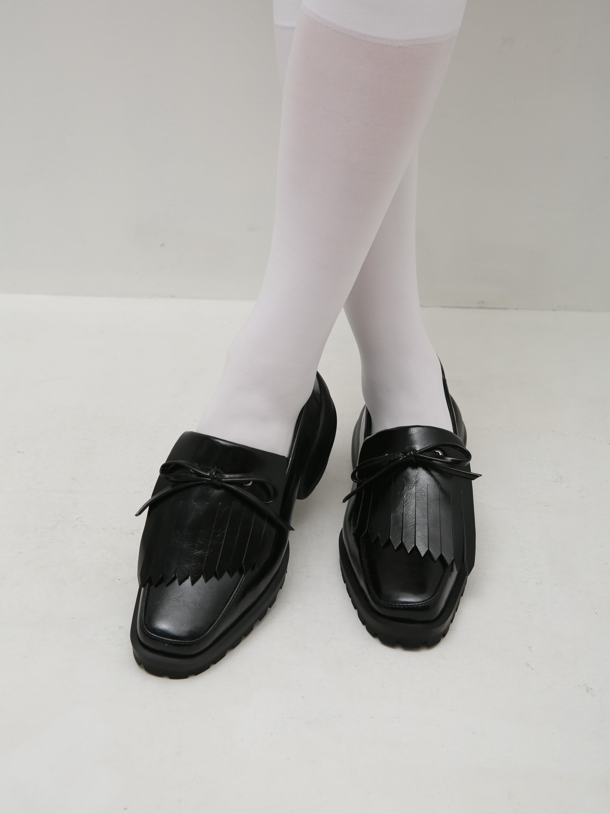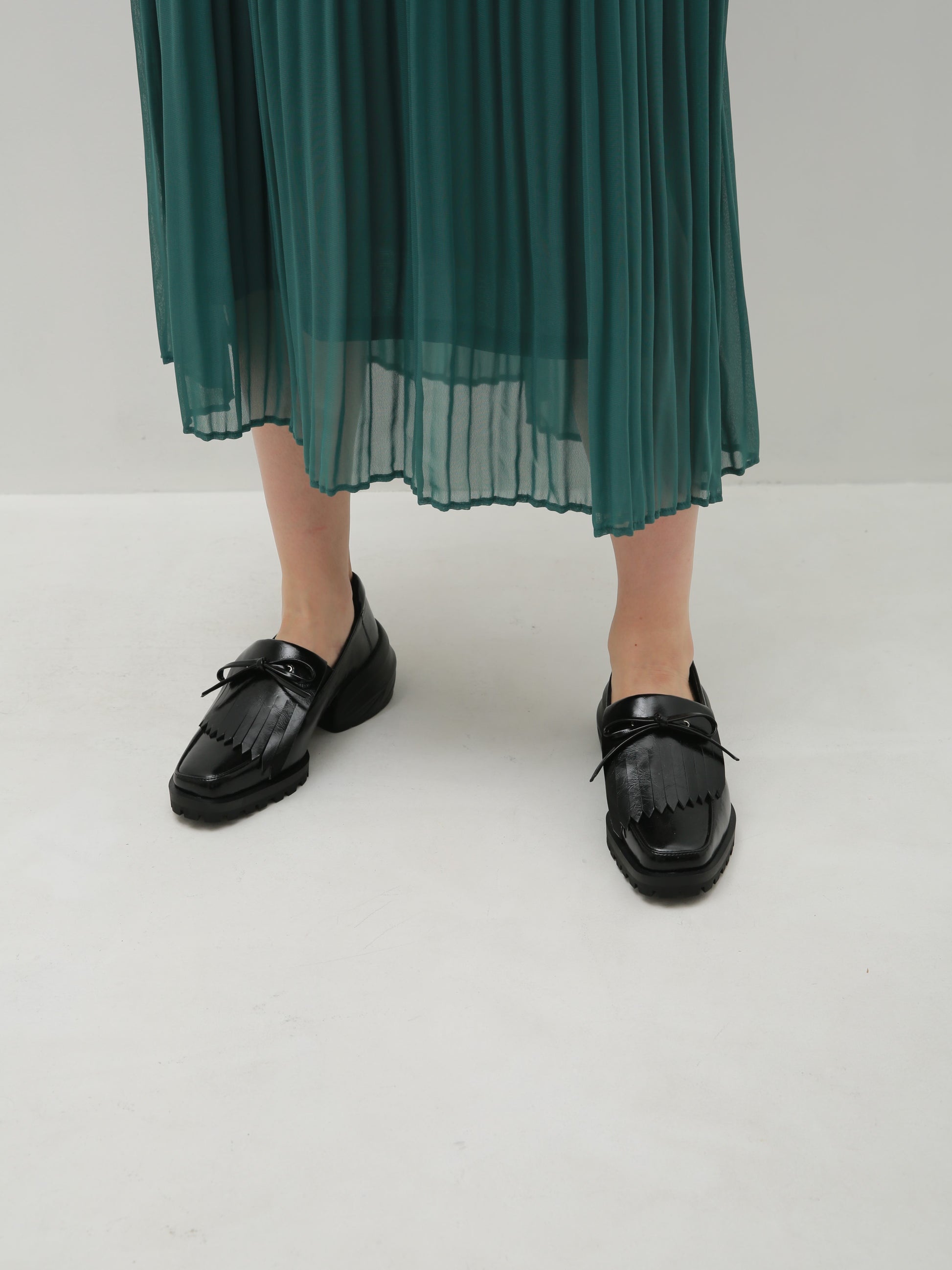 ONでもOFFでも活躍する、普段のコーディネートに馴染みやすいように、フリンジ×5cmの高さのスニーカーヒールを施し、個性的かつスタイリッシュにデザインされています。